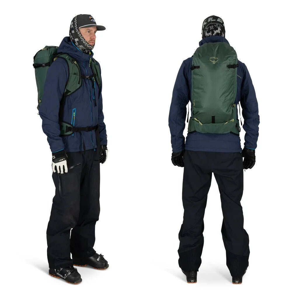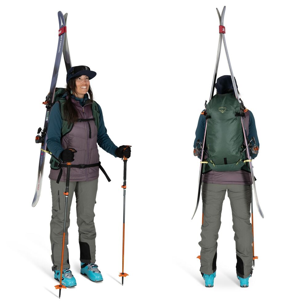The Osprey Firn 28 Pack is Osprey's answer to the needs of intrepid ski mountaineers. With its vest-inspired design, the pack keeps the load close to your body, creating stability as you pick your way through a rocky choke point. For nutrition, hydration, or navigational devices, two stretch pockets and a single zippered pocket are present on the shoulder straps, allowing you to access needed items on the go. Other exterior storage includes a stretch pocket, a gear loop on the waist strap, and a crampon pocket giving you access to your most essential gear without removing the pack. The quick ski carry features a ski lasso that can be used ambidextrously and doesn't require pack removal to be used. An HDPE framesheet provides enough support for needed mountaineering essentials but can be easily removed to make the pack more pliable or to reduce weight. The Firn 28 also features a dedicated safety pocket for fast and direct access to your avalanche tools in case of an emergency. A cinch-top main body is easy to load and has a top strap and flap that covers and secures the opening while providing a clean and organized rope carry. Finally, the Firn 28 features reinforced points purposefully designed to tow a sled, which will come in handy on the next hut trip. Whether you're doing long races, fast missions, or even just day-to-day touring, the Osprey Firn 28 Pack is a pack to be excited about.