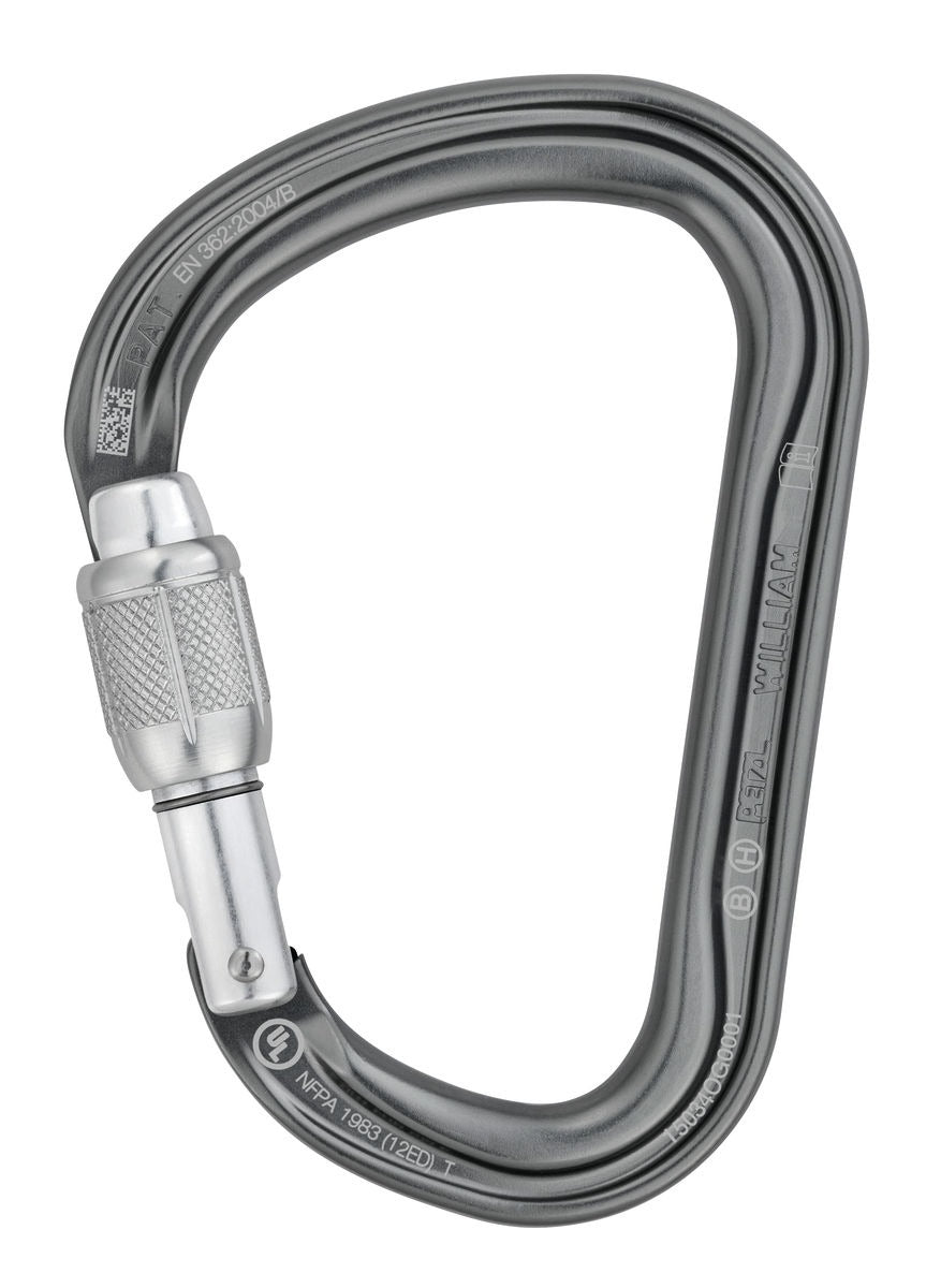 The WILLIAM asymmetrical large-capacity aluminum carabiner has a pear shape that is practical for easily connecting multiple items. The ergonomic shape and Keylock system make it easy to handle, even when wearing gloves. The WILLIAM carabiner is available in two locking systems: manual SCREW-LOCK or automatic BALL-LOCK.