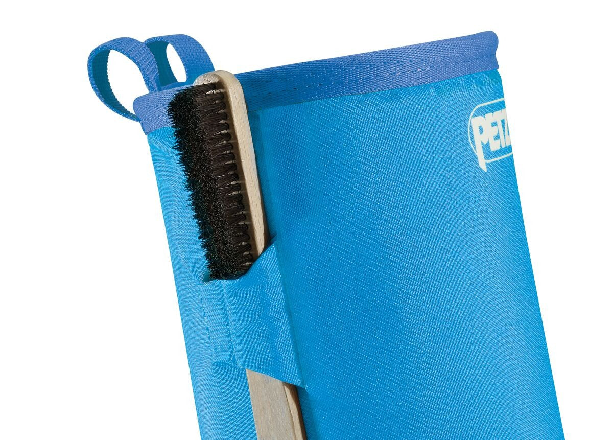The BANDI chalk bag’s round shape is designed to fit your entire hand. It has a practical drawstring and cordlock closure system. A double textile brush slot can hold a variety of brush types. Made with 100 % recycled polyester and nylon, this product has an eco-friendly design.