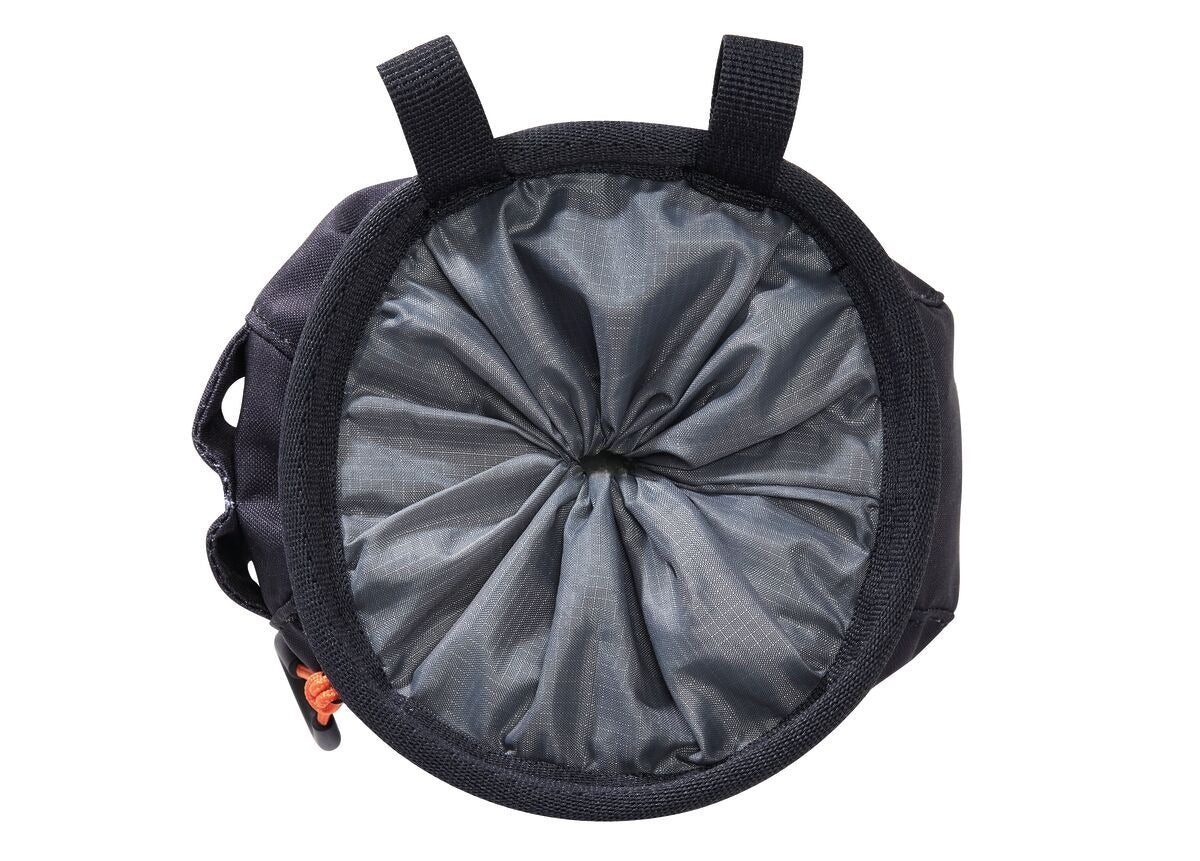 The SAKAPOCHE chalk bag’s ergonomic shape makes it easy to access the chalk. It has a zippered pocket perfect for storing keys, money, granola bar, small headlamp, or route topo. It has a practical drawstring and cordlock closure system. A double textile brush slot can hold a variety of brush types. Made with 100 % recycled polyester and nylon, this product has an eco-friendly design.