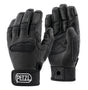 These medium weight belay/rappel gloves offer extra protection without sacrificing dexterity. Double-layer leather and padding protect the palm from heat generated during long rappels or lowers. Fingertips and other high-wear areas are reinforced for increased durability. The back is made of leather with abrasion-resistant stretch nylon at key flex areas. The low profile neoprene cuff with Velcro closure features a reinforced carabiner hole for attaching the gloves to your harness.