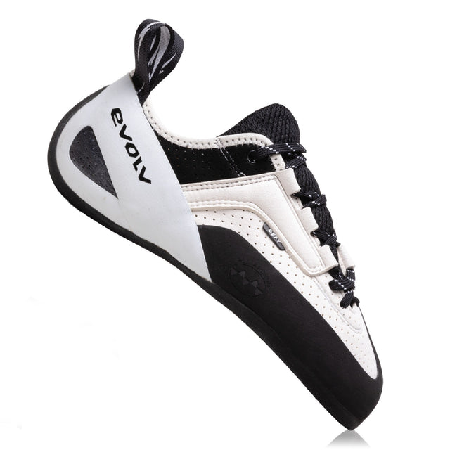 An advanced entry-level option with slight camber and a more asymmetric fit, the men's evolv Defy Lace climbing shoes create a more precise connection between climber and hold.