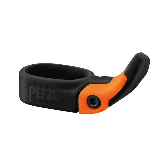 TRIGREST is a removable handrest that improves the grip of an ice axe without a handle. Positioned on the shaft, its height is quickly adjusted without a tool. When positioned out of the way at the top, the ice axe may be used freely in walking position.