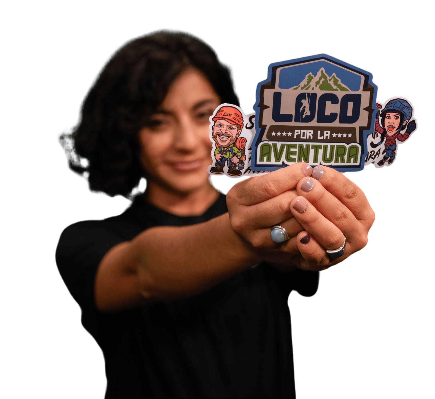 - “Loco por la Aventura Todos en la Cima” – 6″ x 3.5″ (15.24 x 8.89 cm)