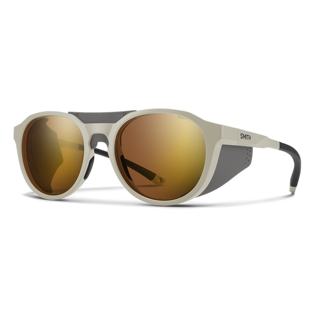 Where snow falls, you follow. On summit bids or high-speed descents, the Smith Venture sunglasses provide much-needed eye protection in alpine environments. They're our take on glacier glasses, with removable side shields that protect against light reflecting off snow, rock and ice. ChromaPop™, lens technology offers a terrain-boosting view of every wind drift and crevasse. Autolock hinges make for easy on and off when one of your hands is occupied with an ice axe or ski poles. And then there are the iconic round frames that look just as good glissading down a snowfield as relaxing post adventure.