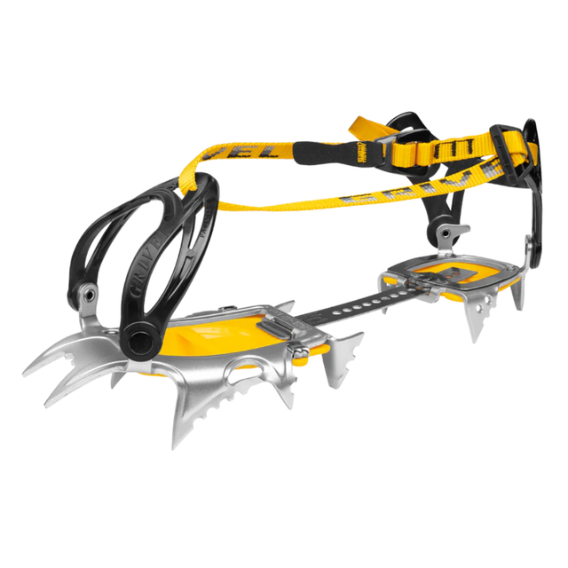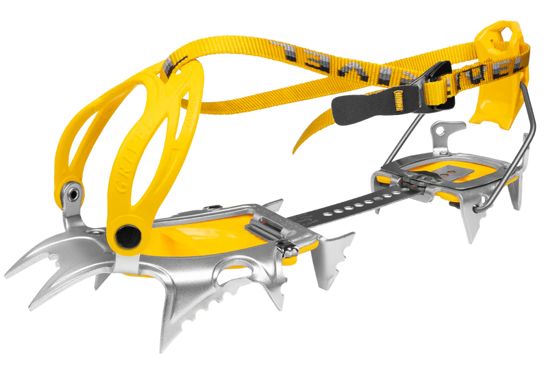 Air Tech Light Wide, in aluminum, is a close relative of the Air Tech family but with a significantly lower weight. Suitable for both mountaineering and ski touring. It has 12 points distributed in order to allow incredible performances on ice and snow. Thanks to the flexible regulation bar, it follows every movement of our foot. Adaptable thanks to the New-Matic Wide EVO and New-Classic Wide EVO systems. Equipped with the famous Grivel proactive Antibott both in the front and the rear. Its strong points are lightness and stability.