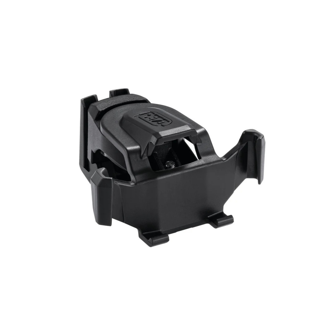 Plate for mounting a Petzl headlamp on bicycle handlebars or seat post.