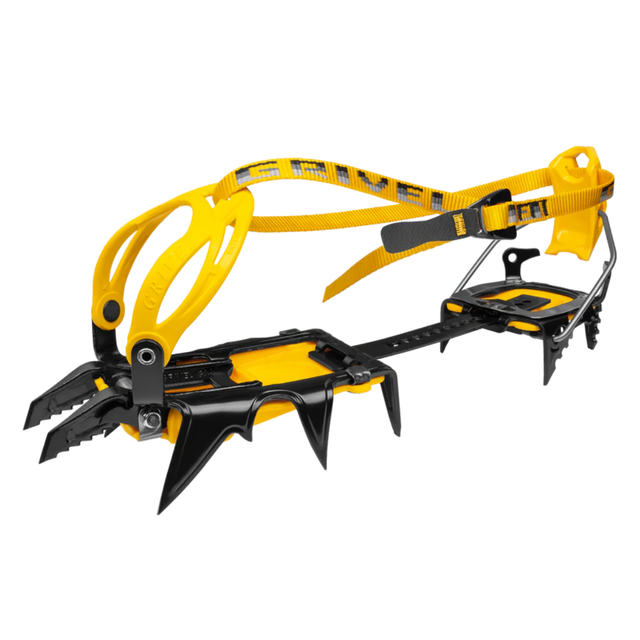 G14 has 12 points. The 2 front ones are hot-forged, are replaceable and can be mounted in both bi-point and mono-point configuration. The forging allows a three-dimensional shape to improve both penetration into the ice, without rebounds, and support. They can be replaced if worn out. Adjustable central bar. Equipped with the famous Grivel proactive Antibott both in the front and the rear. Available with Cramp-O-Matic EVO or New-Matic EVO binding.