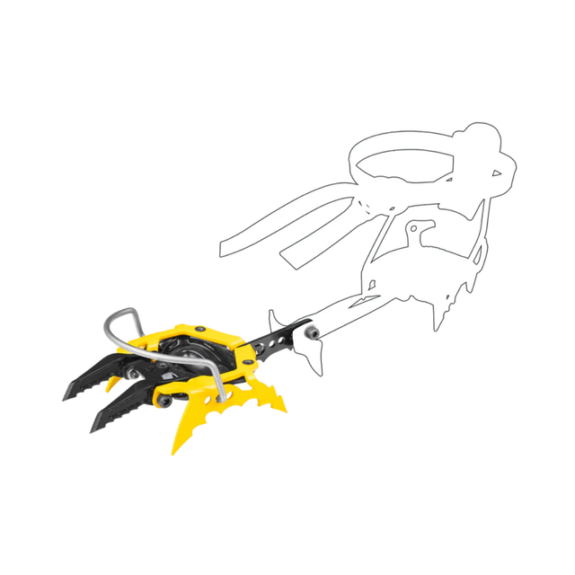 Replacement for G22 plus crampon front, including bail. Built in steel, it is very robust. Two hot forged front points. The package contains two pieces (one right and one left). The mounting bolts are supplied in the pack. Perfect solution to revive the crampon or to transform a G20 plus into a G22 plus.