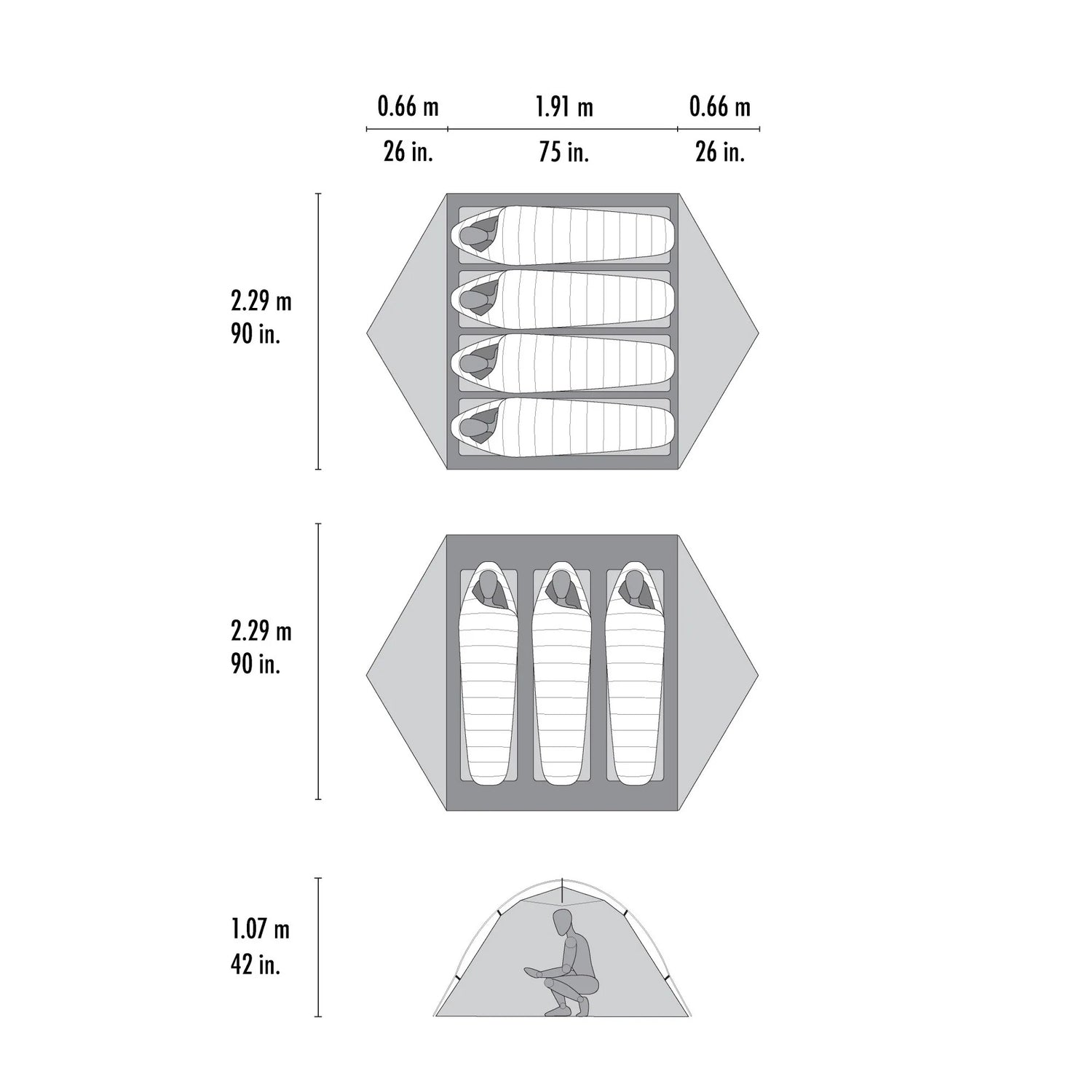 The airy Hubba Hubba LT 3 has a trick up its sleeve; it can also be a 4-person tent. With enough space to accommodate three wide sleeping pads width-wise or four regular pads length-wise, it’s equally at home in the backcountry or as a car camping tent.